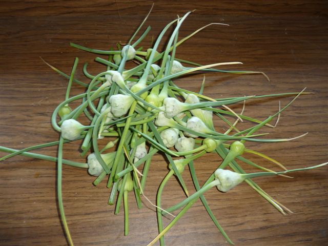 大蒜生長過程中, 必須剪掉長莖上的頭, 地下的根 (即大蒜) 才會長得肥美, 剪掉的傷口處, 會有清澈汁液流出,