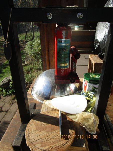 11/18 設定自製的榨油機, 橄欖泥上壓木塊, 木塊上壓鉛塊